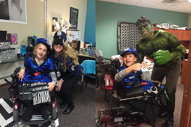 On October 29th Rockford Career College celebrated Halloween by having staff and students bring their families to the school for trick-or-treat. Over fifty kids had a great time at the event. Jaiden and her mom, Danielle Harriott, both dressed up as police officers. Jaiden “captured the heart” of the “Hulk Mike O’Herron”. As you can see, staff at Rockford are a real family.